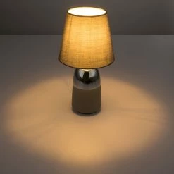 Diese moderne Tischleuchte überzeugt durch ihre Optik. Der Lampenschirm hat eine elegante Textiloptik. Zudem verfügt die Tischleuchte über eine Touchfunktion. Somit ist das Ein- und Ausschalten mühelos per Berührung möglich.