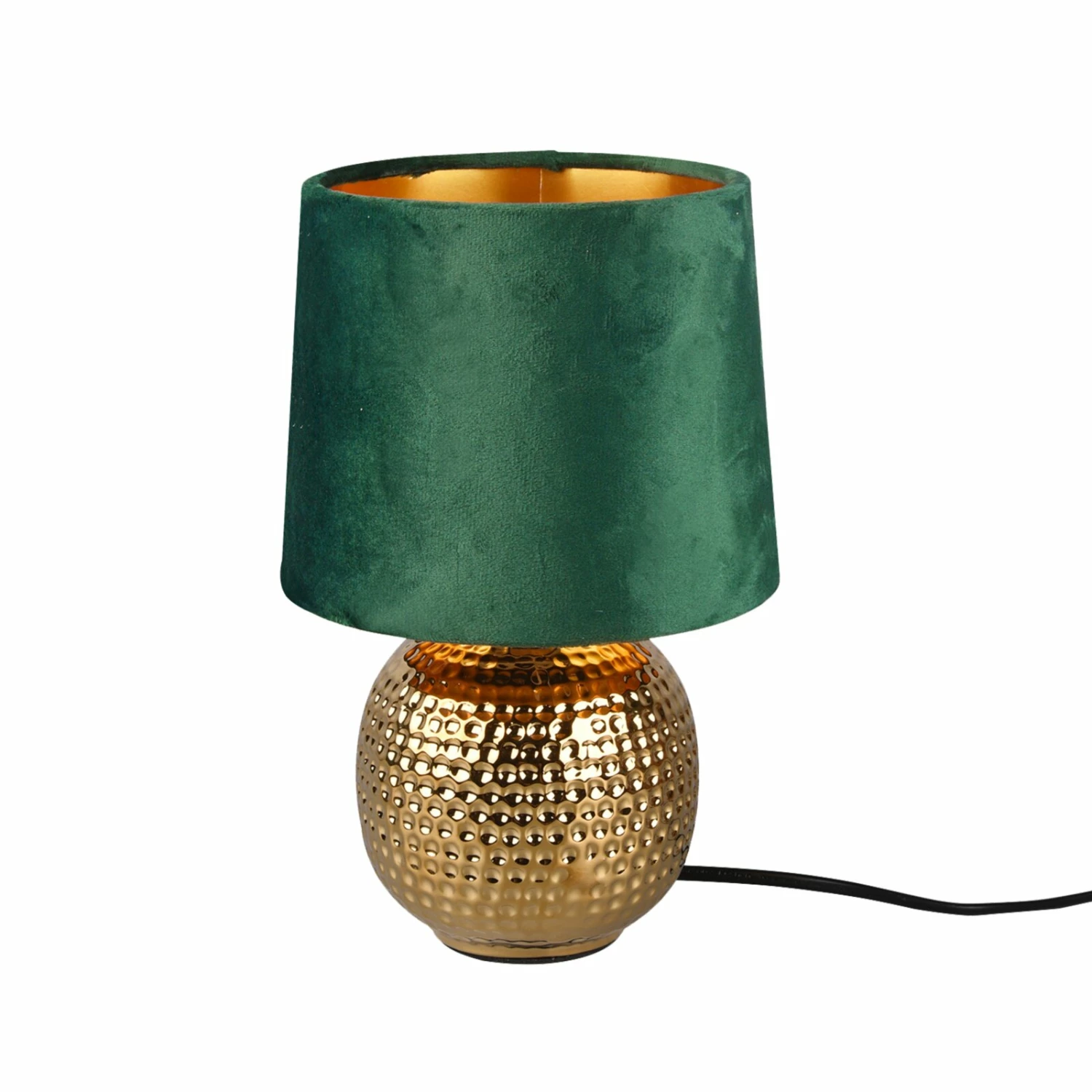 Mit dieser Tischleuchte in Gold mit grünem Schirm veredelst du Dein Schlafzimmer im Handumdrehen! Die Leuchte besteht dabei aus Keramik, während der Schirm aus Stoff besteht. Das Leuchtmittel ist nicht im Lieferumfang enthalten. Mit der Wahl eines LED-Leuchtmittels kannst du somit einiges an Energie sparen.