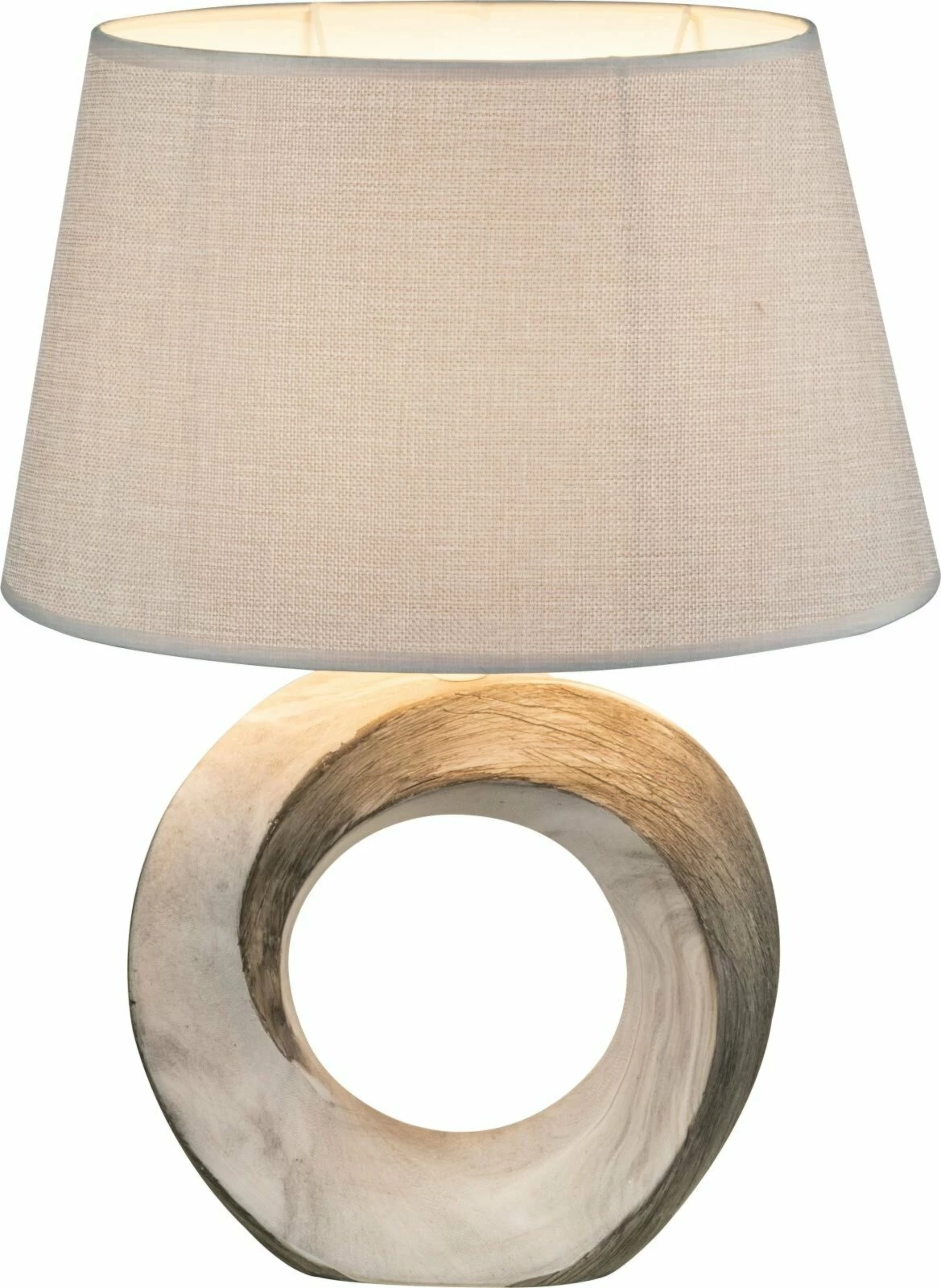 Tischleuchte JEREMY mit Keramik Fuß im stilvollen und verspieltem Design. Der große Stoffschirm sorgt für ein angenehmes Licht und vervollständigt den Look. Die Leuchte lässt sich vielseitig kombinieren.