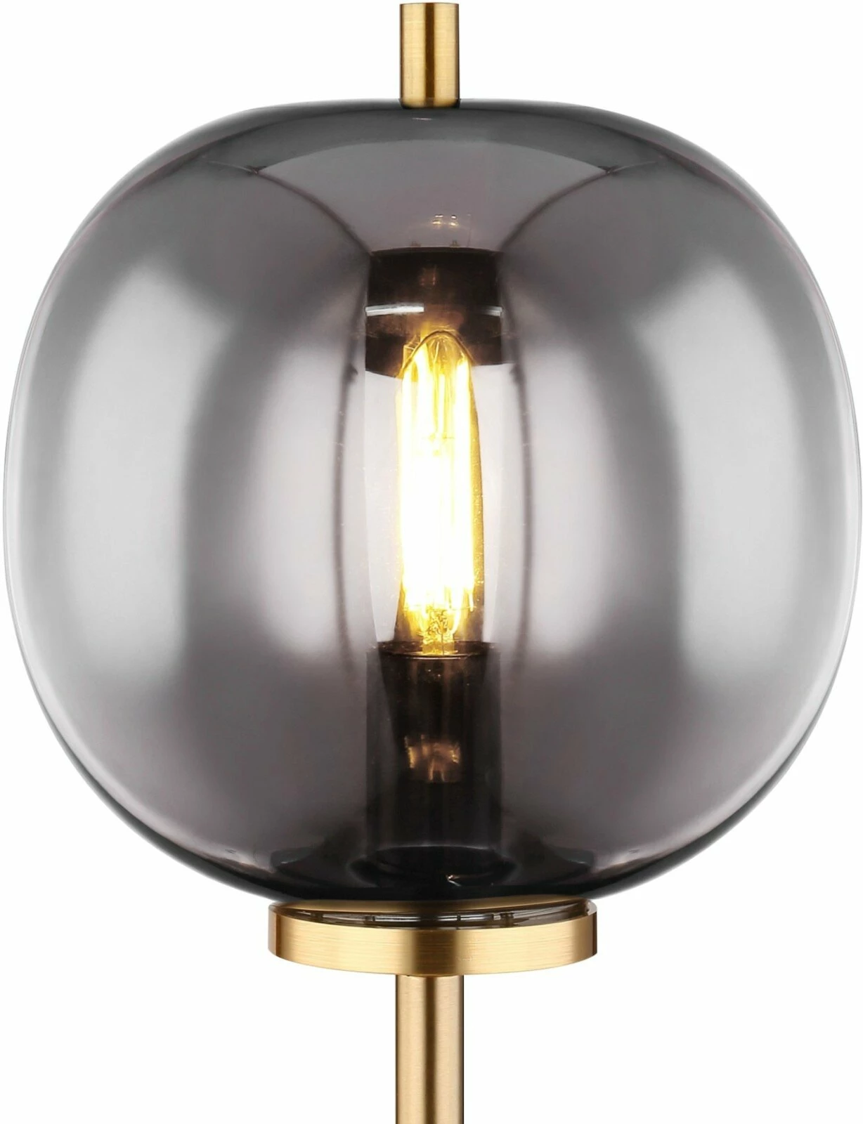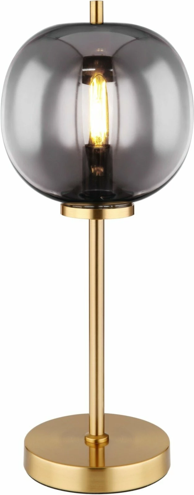 Diese Tischleuchte ist die ideale Ergänzung für deine Inneneinrichtung und sorgt für ein tolles Ambiente. Die Kombination aus dem messingfarbenen Metallsockel und dem Rauchglas lässt die Leuchte besonders edel wirken. Sie ist ausgestattet mit einem Kabel mit einer Länge von etwa 150 cm und mit einem praktischen Wippschalter.