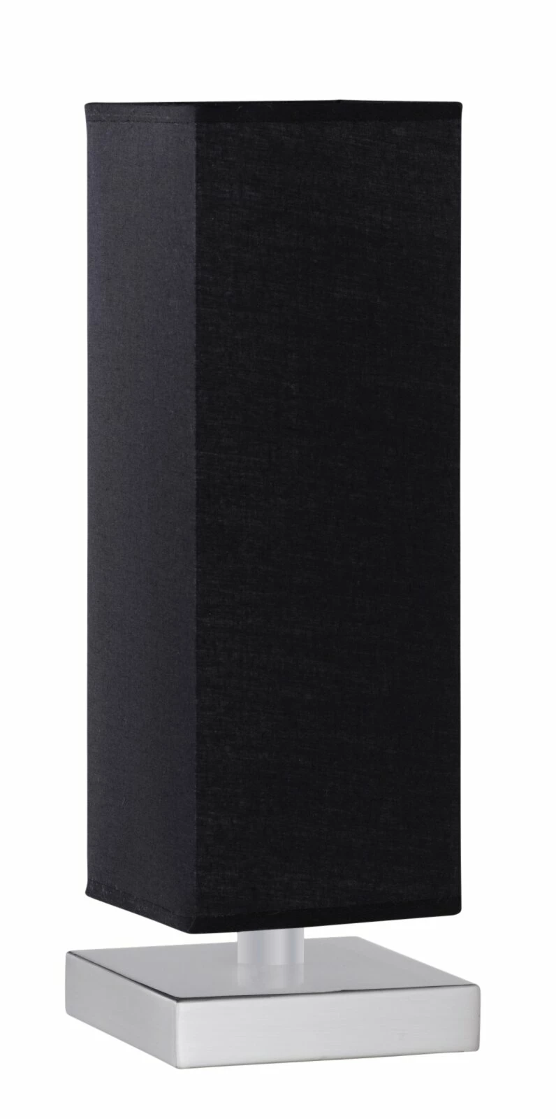 Schicke Tischleuchte in Nickel matt und Schwarz mit Touchdimmer. Diese Leuchte sieht besonders schick auf Tisch und Fensterbank aus.