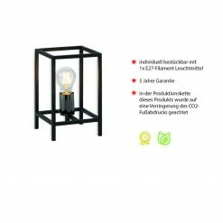 Die schwarze Tischleuchte sticht aufgrund ihres rustikalen Vintage-Looks hervor. Sie haben die Möglichkeit mit einem E27 Leuchtmittel bis maximal 60 Watt Ihre Lampe auszustatten. Im Lieferumfang ist kein Leuchtmittel enthalten.