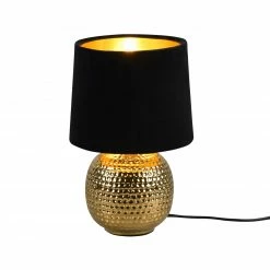 Mit dieser Tischleuchte in Gold mit schwarzem Schirm veredelst du Dein Schlafzimmer im Handumdrehen! Die Leuchte besteht dabei aus Keramik, während der Schirm aus Stoff besteht. Das Leuchtmittel ist nicht im Lieferumfang enthalten. Mit der Wahl eines LED-Leuchtmittels kannst du somit einiges an Energie sparen.