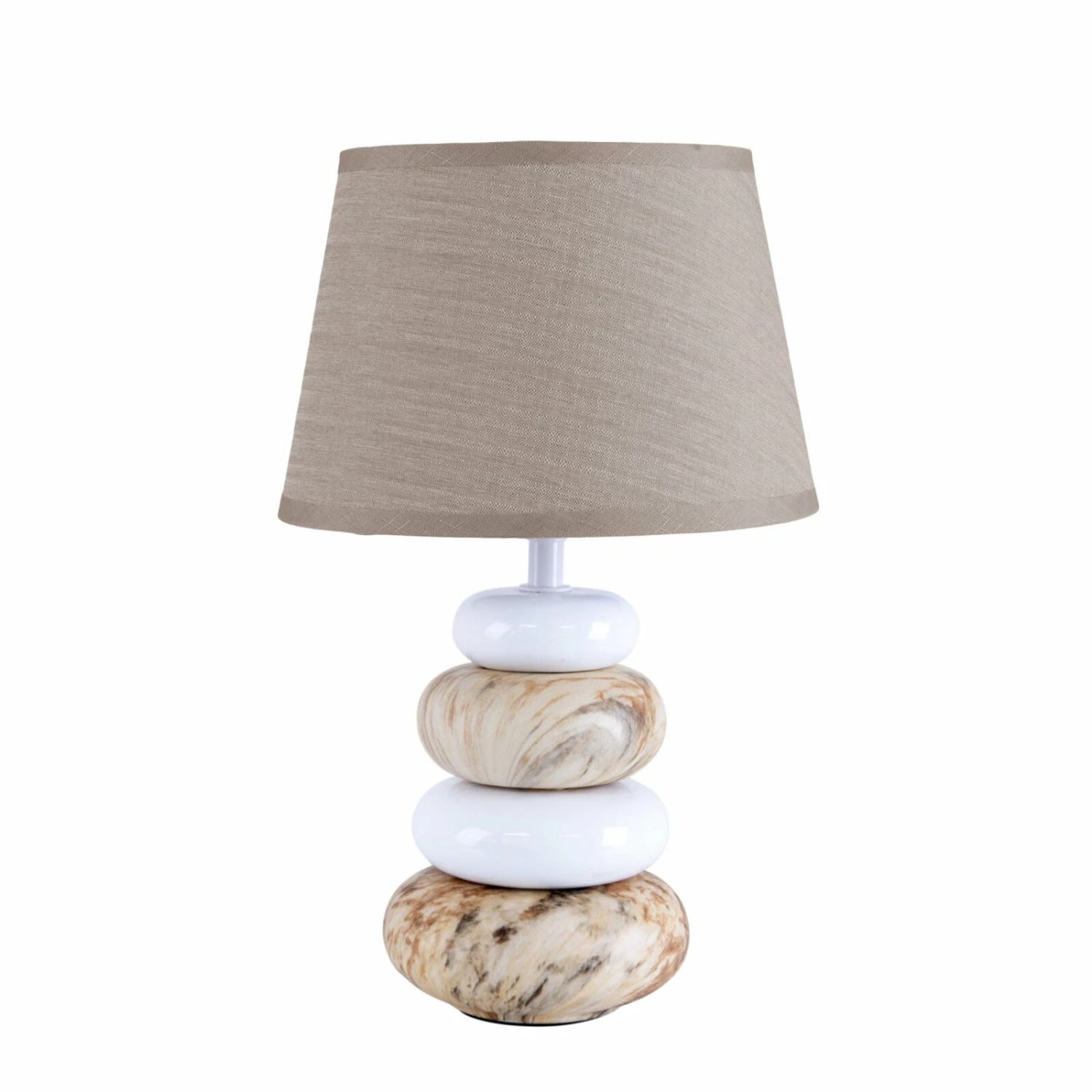 Die dekorative Keramik-Tischleuchte STONEY ist ein tolles und praktisches Wohnaccessoire. Die Leuchte in Braun und Weiß verfügt über eine E14-Fassung und hat eine Höhe von etwa 31 cm. Die Keramikelemente erscheinen als übereinander gestapelte Steine – eine stilvolle Optik, die jeden Blick einfängt.