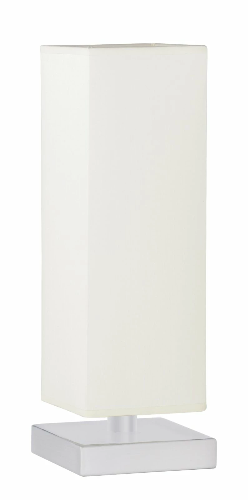 Die klare Linie und die dezente Eleganz lassen die Tischleuchte TOUCH ME zu einem wahren Blickfang werden. Der Stoffschirm in Weiß kombiniert mit dem Fuß in mattem Nickel erreicht ein perfektes farbliches Zusammenspiel.