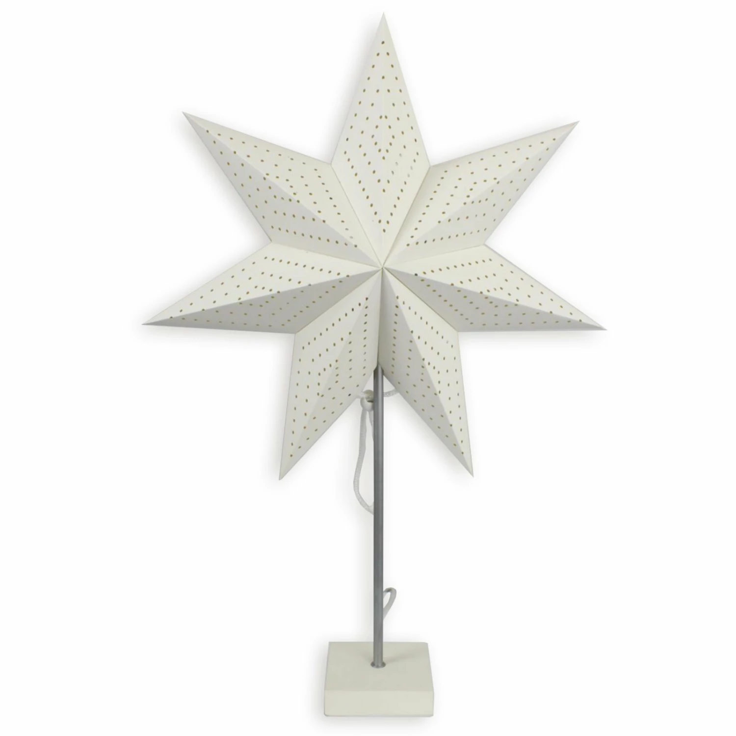 Weiße Tischleuchte in ausgefallener Form. Diese Leuchte wird auf Ihrem Tisch oder auf Ihrer Kommode oder Fensterbank ein wahrer Blickfang sein.