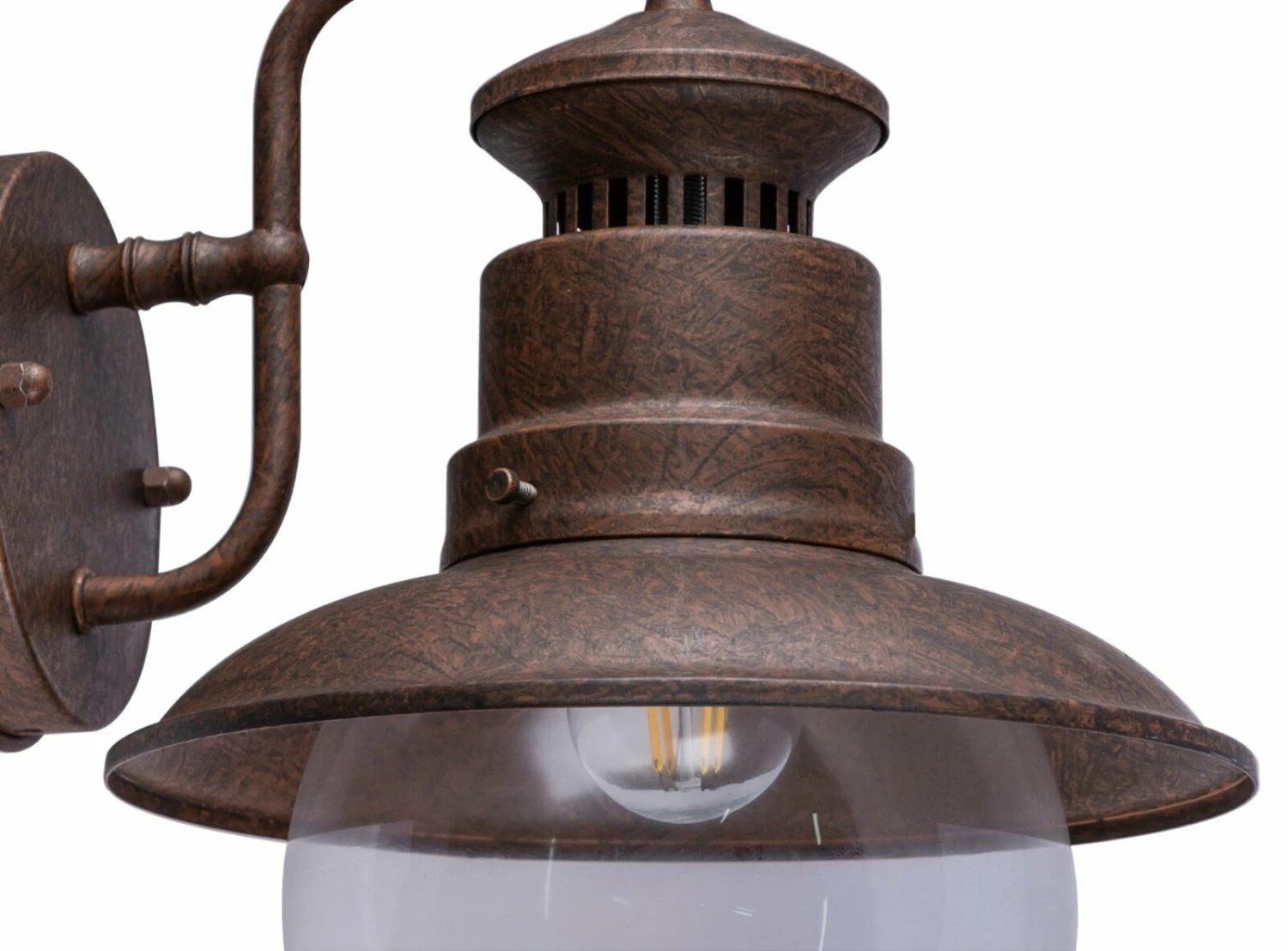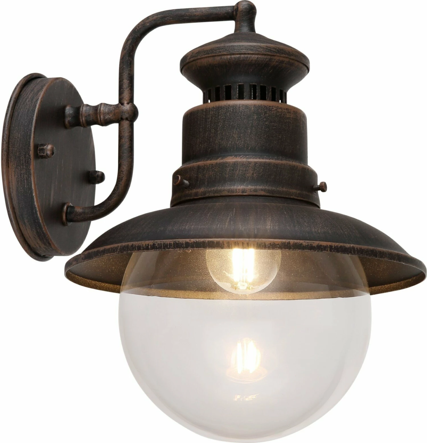 Diese schöne Außen-Wandleuchte im tranditionellen Stil ist aus rostafarbigem Stahl und einem klaren Glas um das Leuchtmittel gefertigt. Die Lampe hängt an einem geschwungenen Arm und unterstützt so das traditionelle Design.
