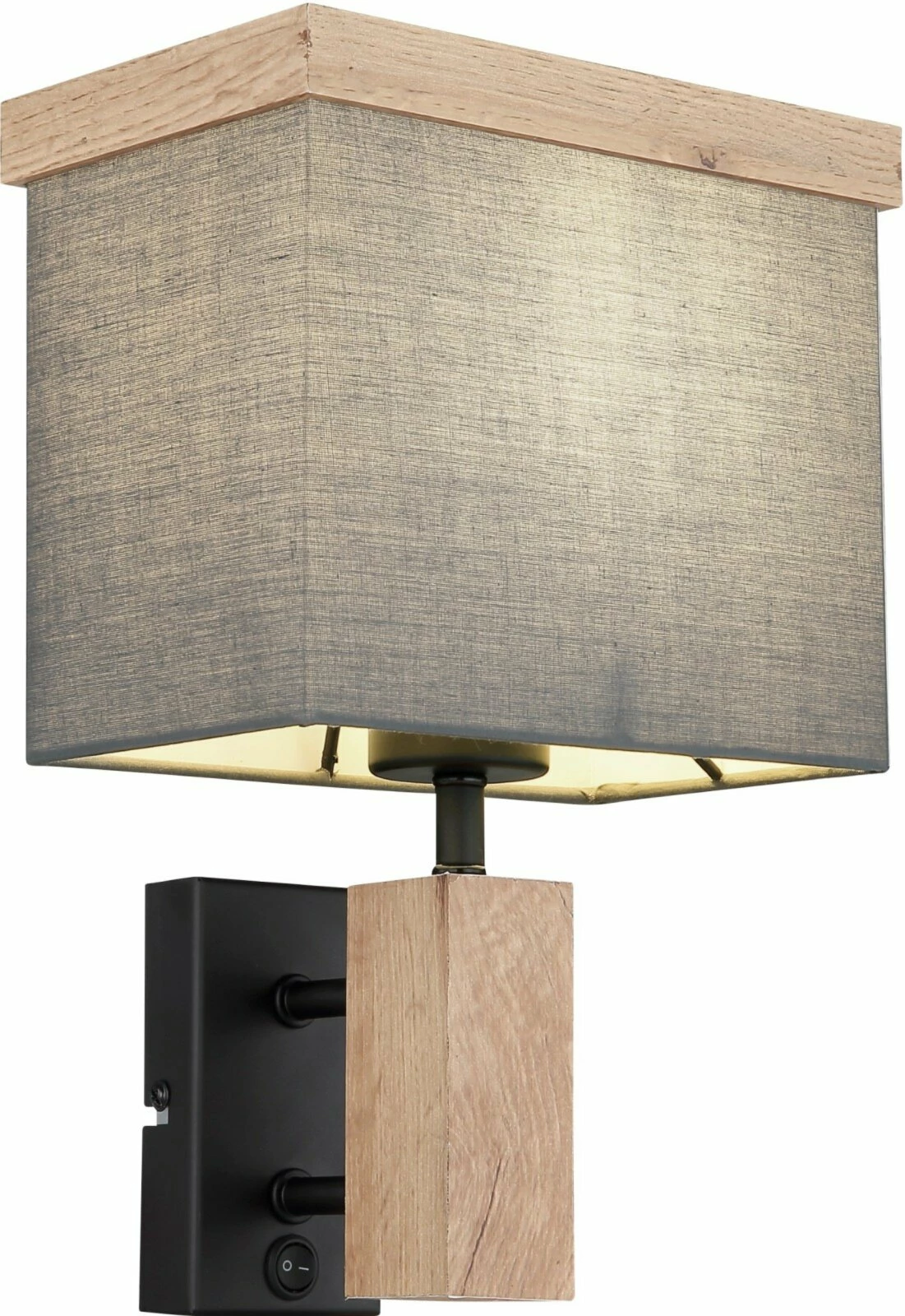 Diese Wandlampe in Anthrazit und Schwarz matt sorgt wegen der Holzoptik und des zeitlosen Schirmdesigns für eine moderne Atmosphäre, die in viele Wohnstile integriert werden kann. Sie ist etwa 30 cm breit und 30 cm hoch.