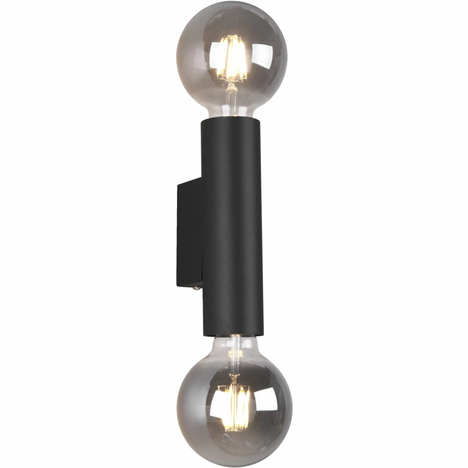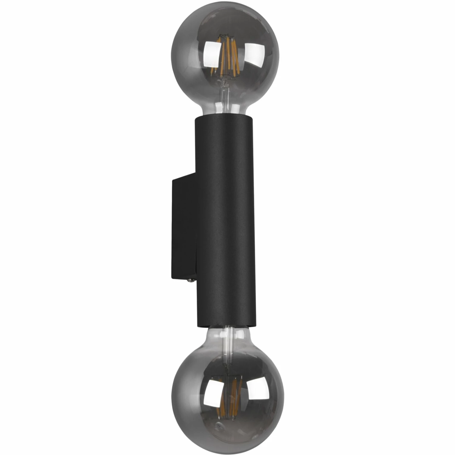 Mit der 2-flammigen Wandleuchte im modernen Design erhalten Sie eine dekorative Beleuchtung für den Flur als auch den Wohn- oder Essbereich. Dabei können Sie zwischen einer vertikalen oder horizontalen Wandmontage wählen. Ihr T-förmiges Gehäuse ist aus schwarzem Metall gefertigt. Das pflegeleichte Material zeichnet sich durch Langlebigkeit und Stabilität aus. Die freien Enden münden jeweils in eine E27-Fassung, die Sie mit passenden Leuchtmitteln bis maximal 40 Watt bestücken können. Zum komfortablen Ein- und Ausschalten ist die Innenleuchte mit einem Schalter versehen.