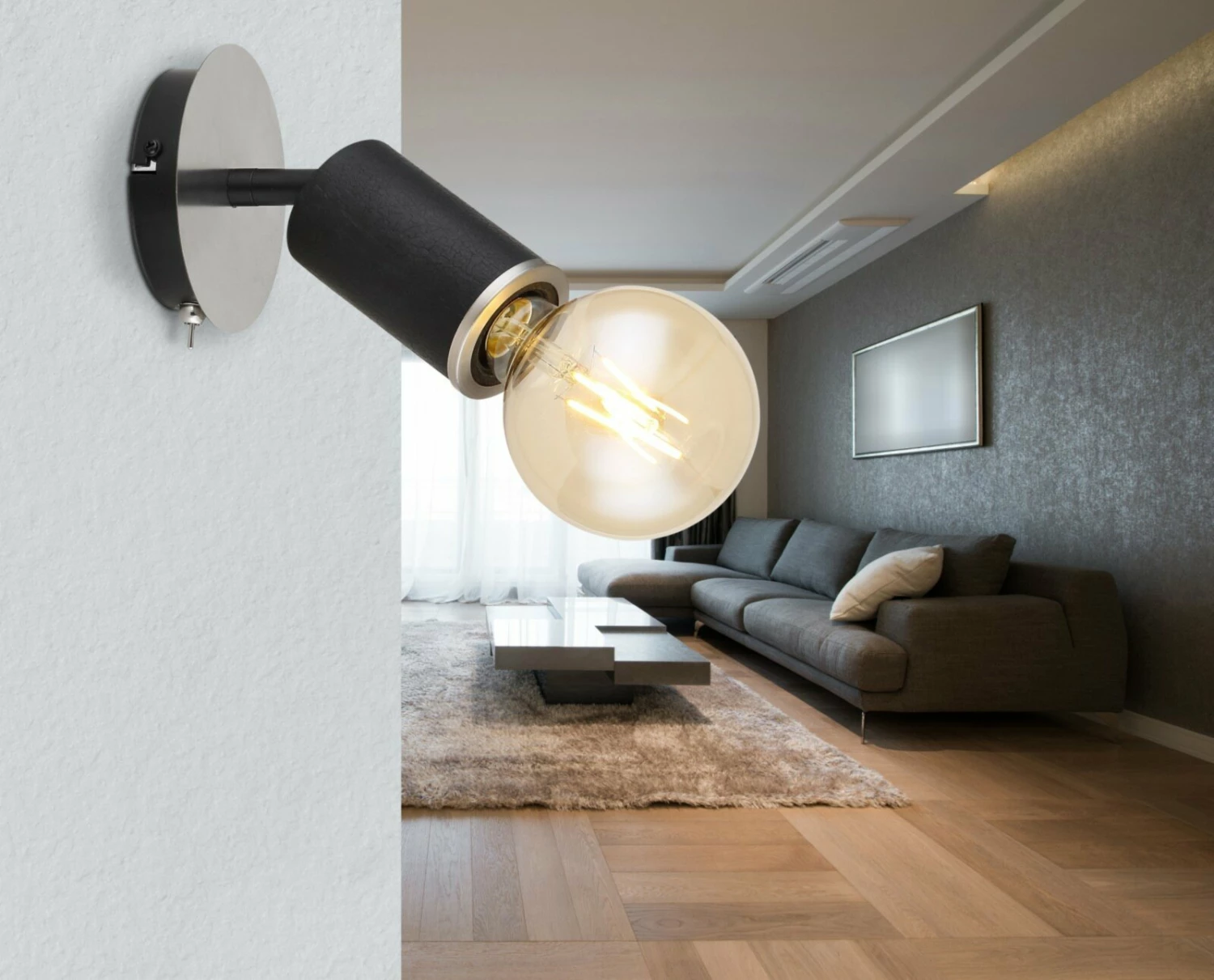 Dieser Wandstrahler in Schwarz matt und Nickel matt ist ein echtes Prachtstück, denn sie weist eine verbrannte Holzoptik auf, welche dir garantiert gefallen wird. Der Strahler ist etwa 12 cm breit und 17 cm hoch.